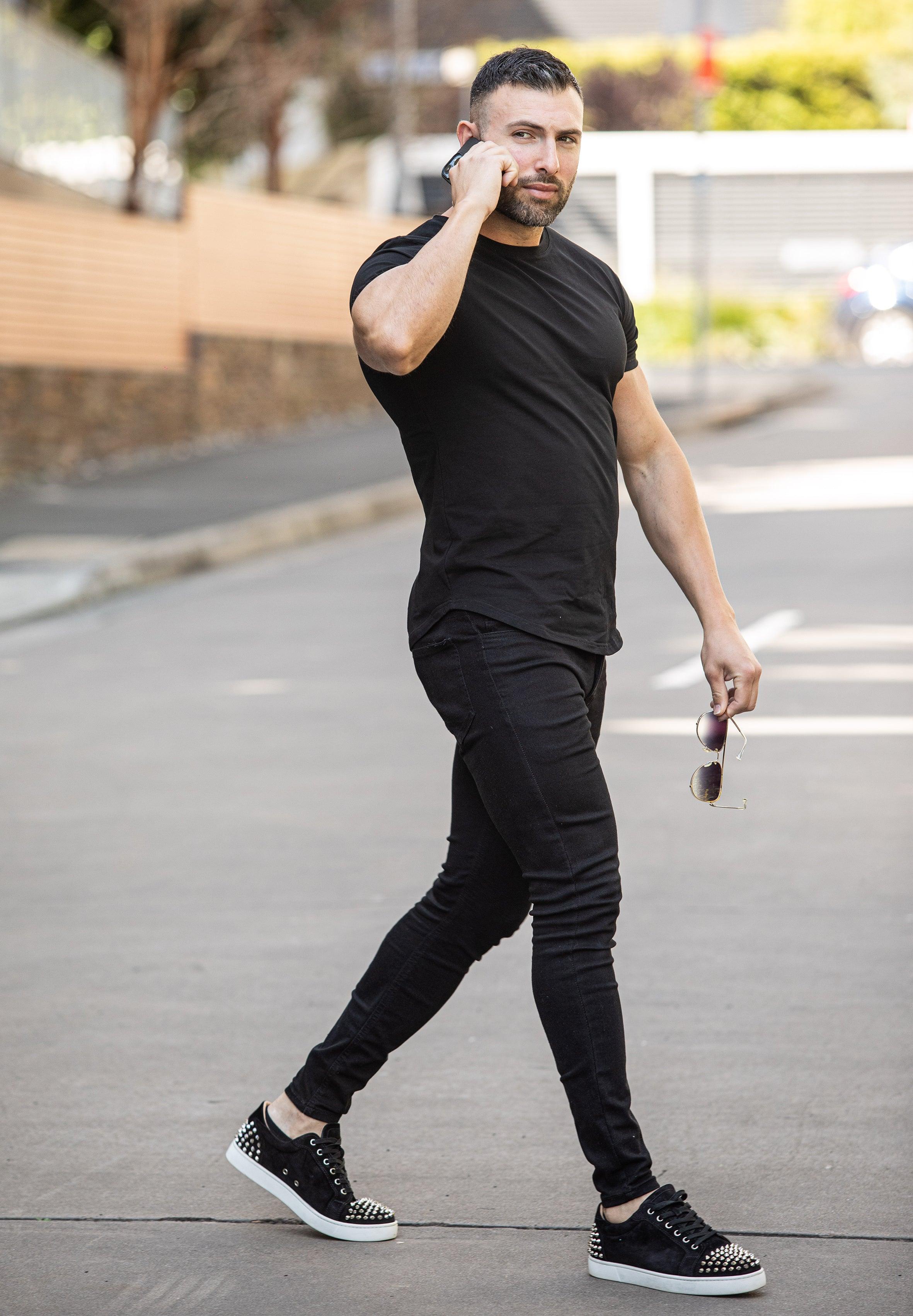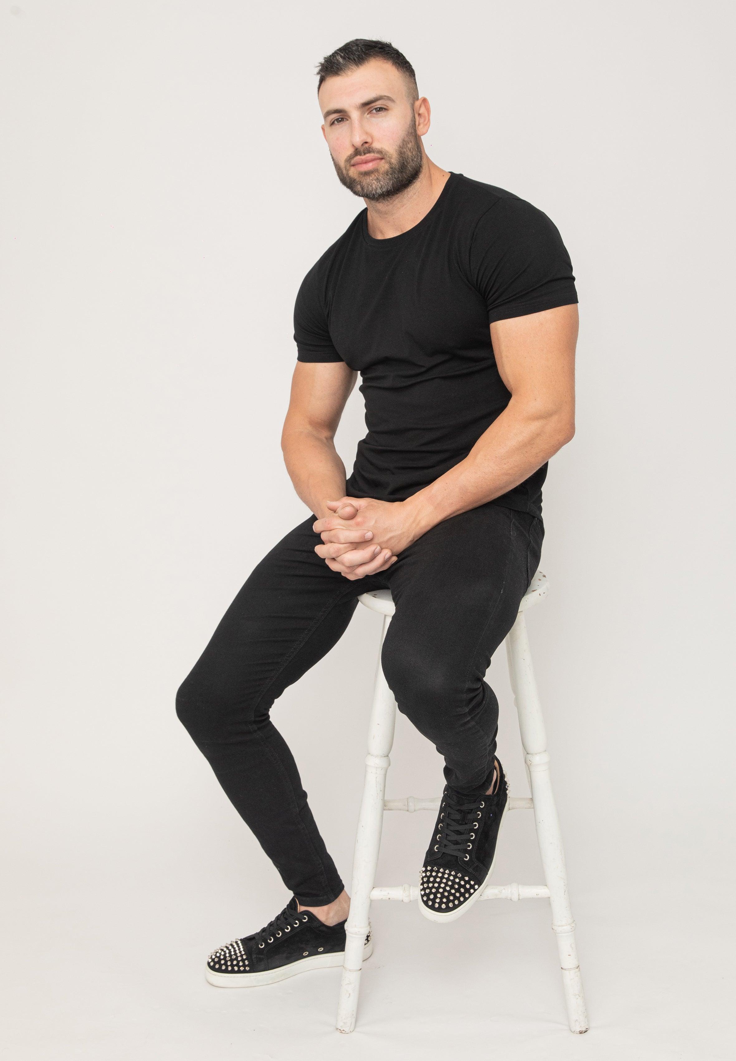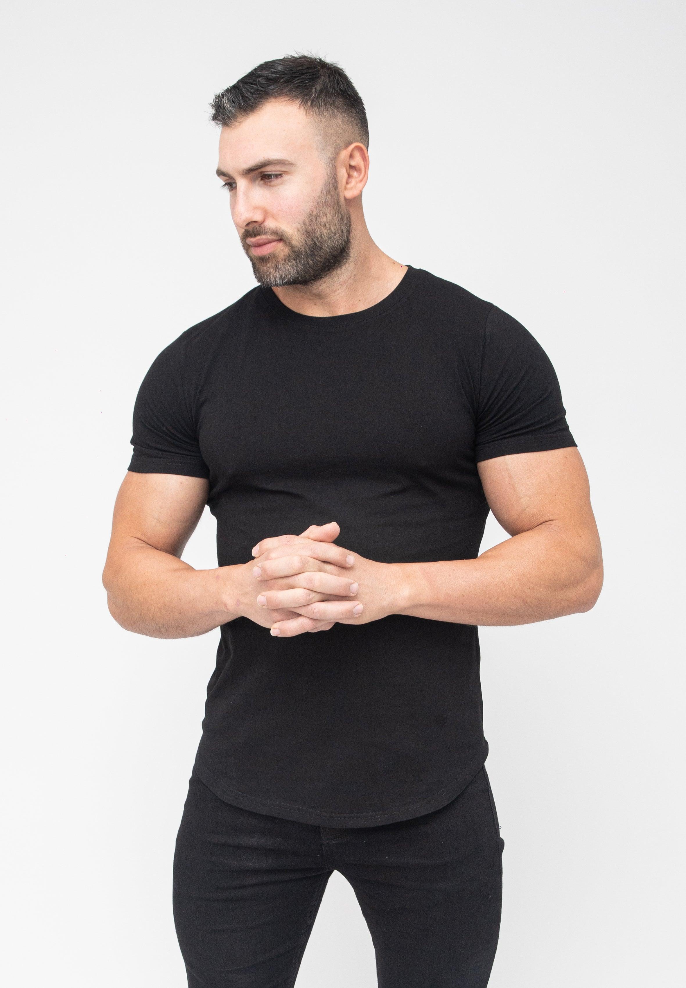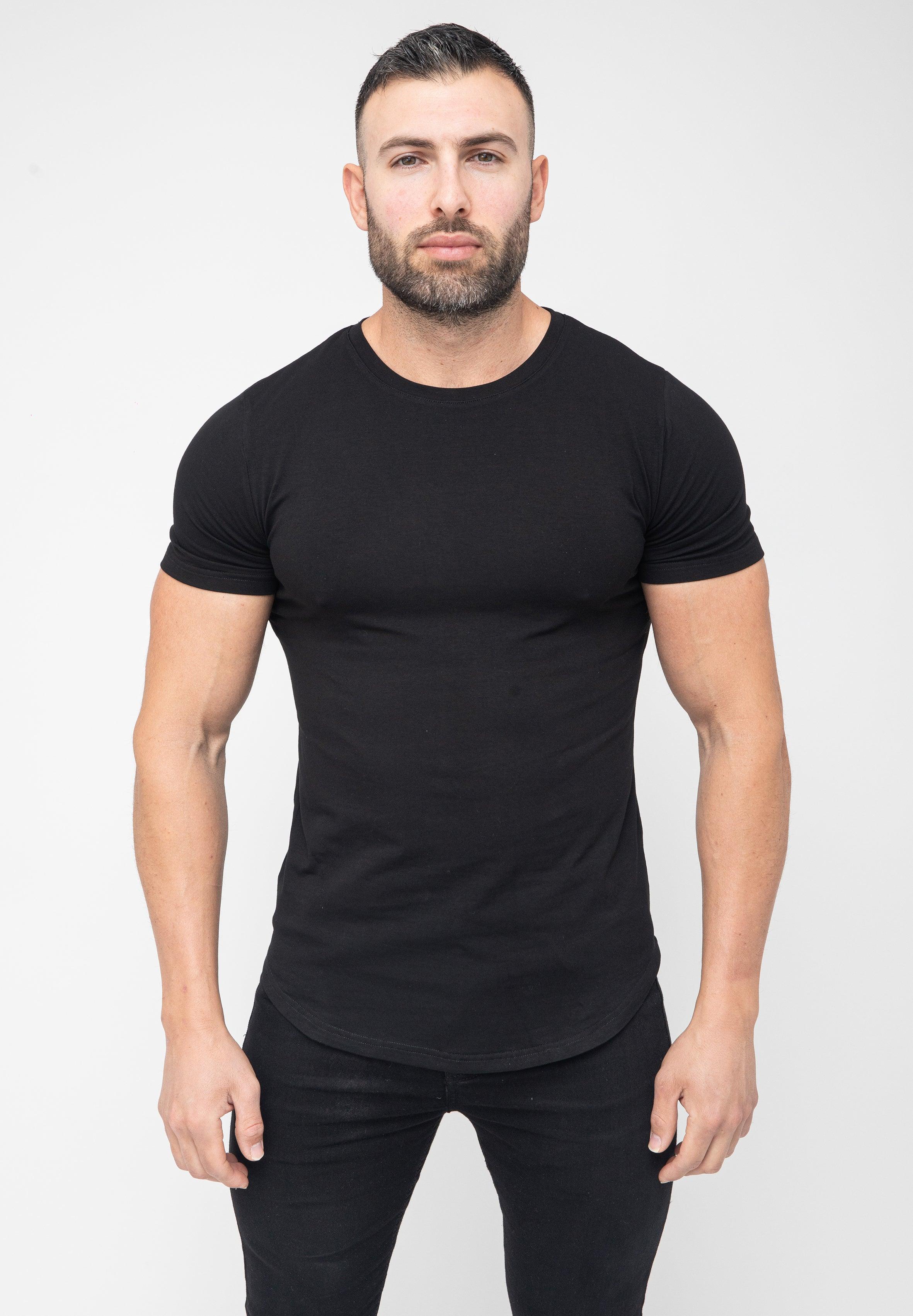 Basic Muscle Fit T-Shirt Black - Curved Hem