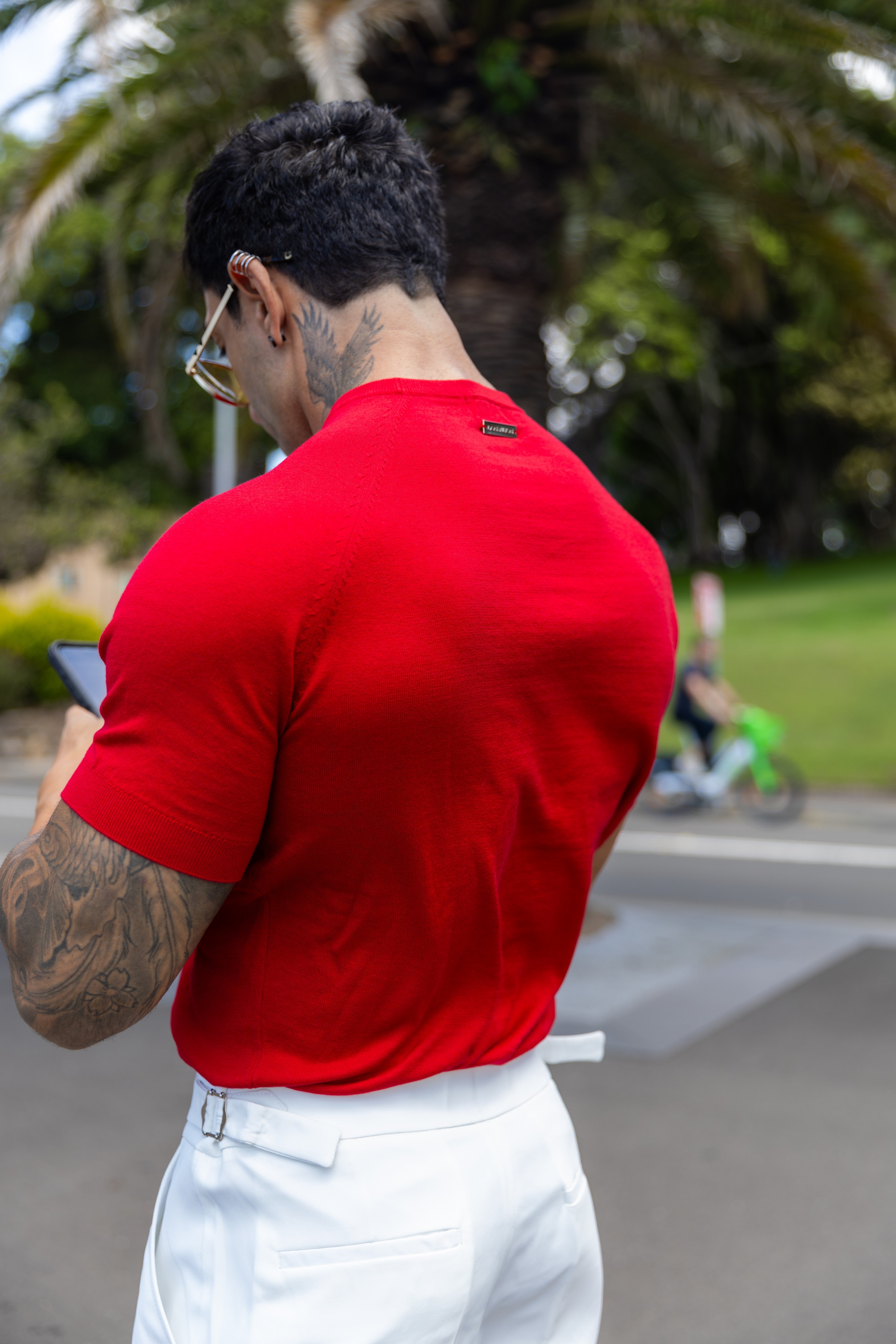 Knit Silk T-Shirt Burgundy - Tailored Slim Fit
