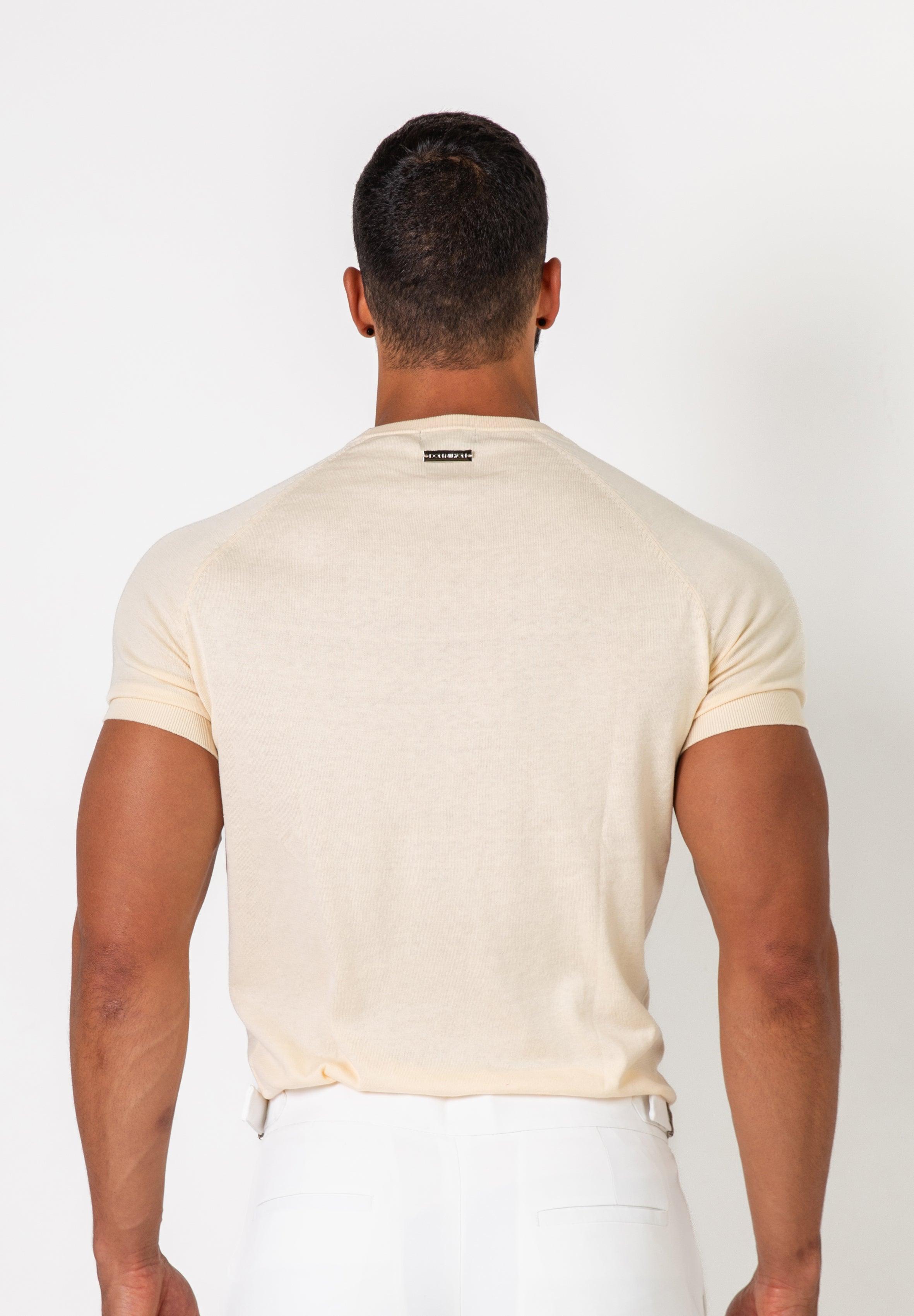 Knit Silk T-Shirt Cream - Tailored Slim Fit