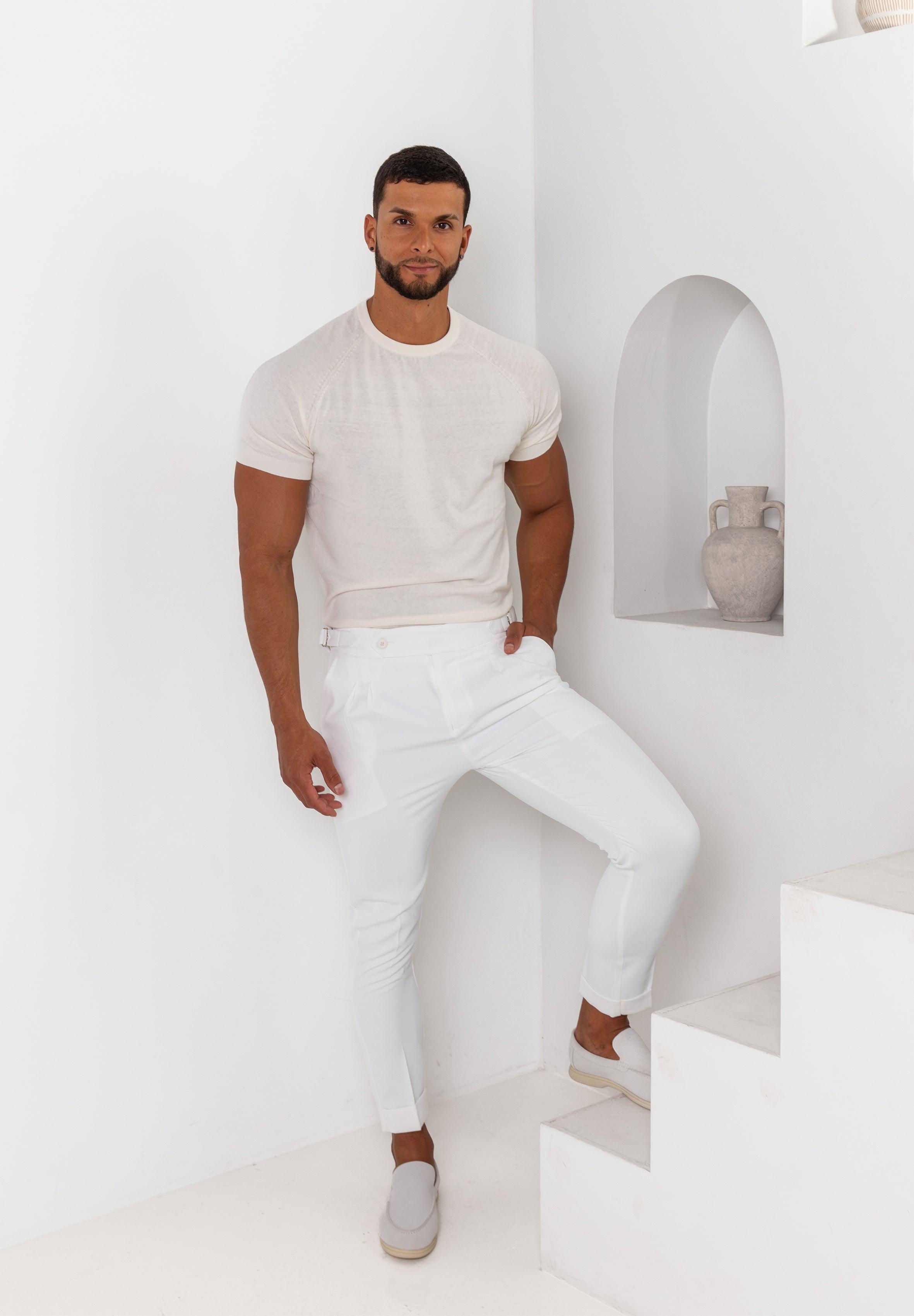 Knit Silk T-Shirt Off-White - Tailored Slim Fit