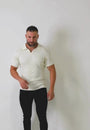 Ribbed Knit Silk Polo Shirt Off-White - Tailored Slim Fit