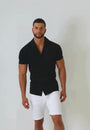 Towelling Button Shirt Black - Tailored Slim Fit